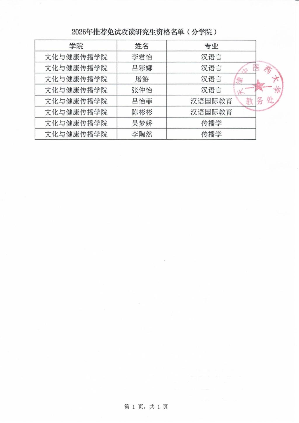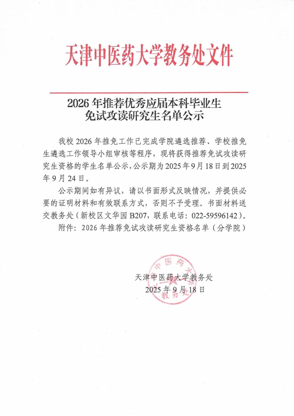 2026年推荐优秀应届本科毕业生免试攻读研究生名单公示