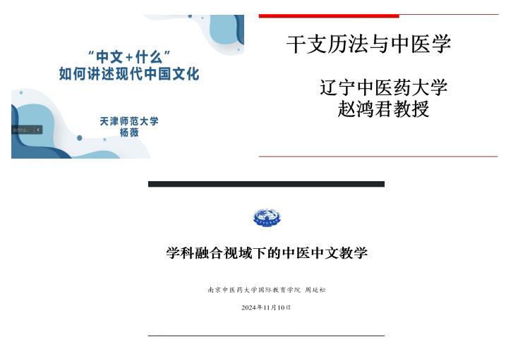 2024年11月10日,文化与健康传播学院“中医特色汉语”虚拟教研室主办了“数字虚拟时代‘中文+中医药’创新发展”论坛会议。此次会议采取线上形式,邀请到天津师范大学国际教育交流学院院长杨薇教授、辽宁中医药大学杏林学院赵鸿君教授、南京中医药大学国际教育学院周延松副教授、加拿大皇家大学传播与文化系系主任李臻怡教授、《中国医学伦理学》编辑部吉鹏程主任、《中医药文化》与《中医药文化(英文版)》(Chinese Medicine and Culture)杂志社杨杨编辑进行主题讲座。文化与健康传播学院院领导、“中医特色汉语”虚拟教研室全体成员及师生代表共80余人参加了本次论坛。