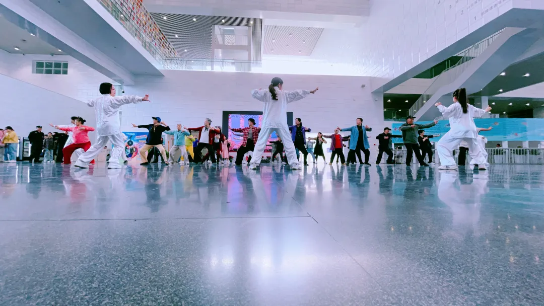 其次,活动现场利用LED大屏展示了明代《脏腑经络图》和清代《月令七十二候》等珍稀文献书影。在天津中医药大学“书籍之美”课程团队师生的讲解和带领下,参与者深入了解了“春雨生百谷”与人体经络的能量呼应。随后,活动进入了精彩的互动环节,八段锦成为了本次体验的核心内容,天津中医药大学师生带领所有参与者在花树前体验了中医养生八段锦。八段锦的每一个动作与中医经络学说紧密结合,不仅锻炼了身体,更让参与者在实践中领悟到中医养生的智慧。这种沉浸式的体验,与田教授在讲座中提到的《黄帝内经》养生智慧相呼应,进一步加深了参与者对中医文化的理解与热爱。
