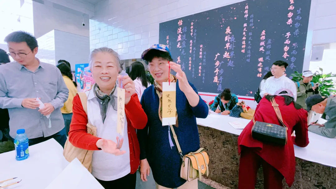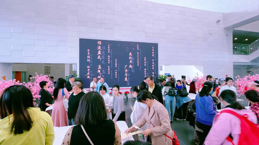 讲座之后开展了科普展演活动,首先进行了“笔墨载道·古籍养生”书法体验工坊。读者领取彩色笺纸,抄录《黄帝内经》中的养生金句,如“春夏养阳,秋冬养阴”“正气存内,邪不可干”。在书法创作的过程中,他们不仅感受到了中医养生文化的魅力,还亲手将书写的彩笺挂在现场布置的花树上,为春日送上一份健康与美好的祝福。