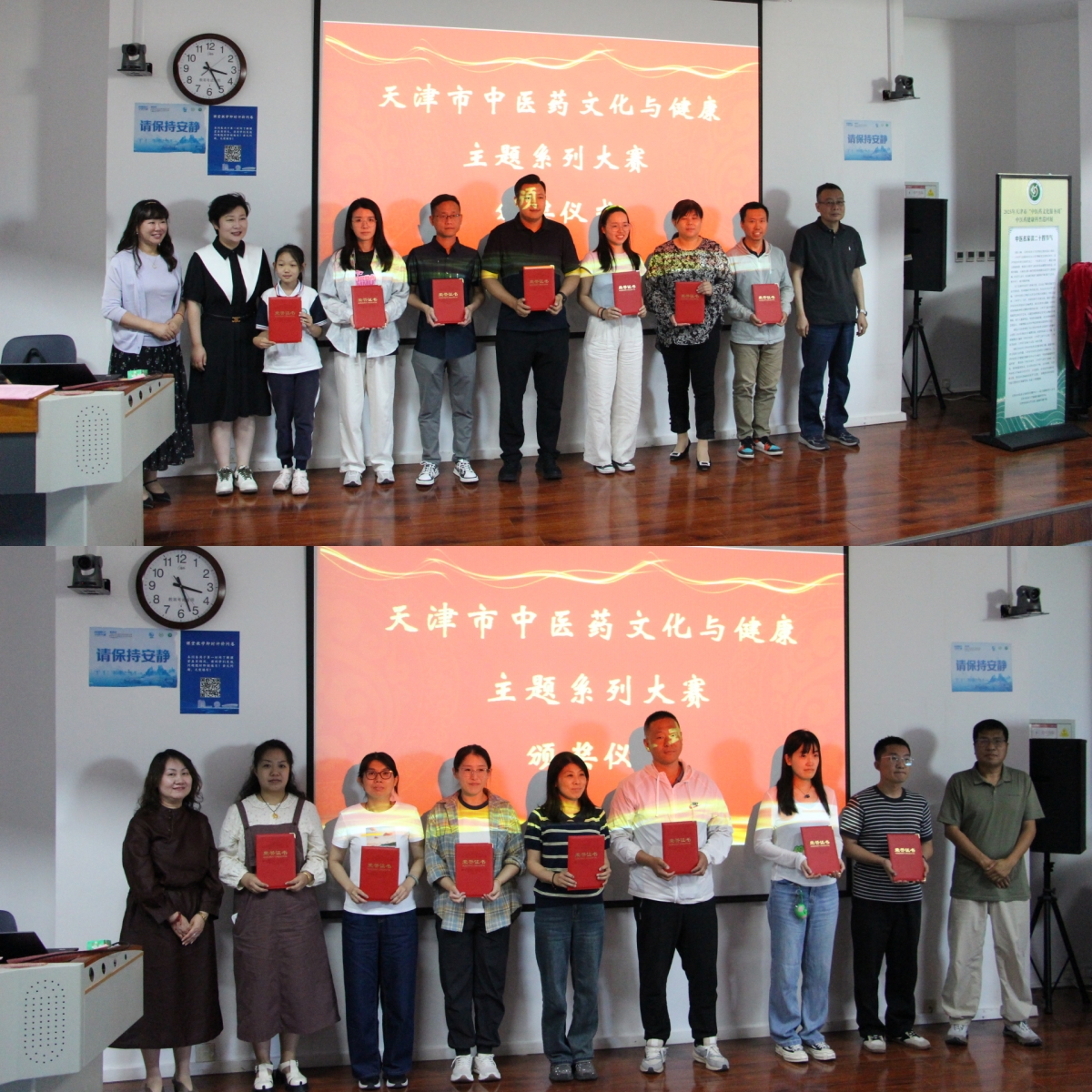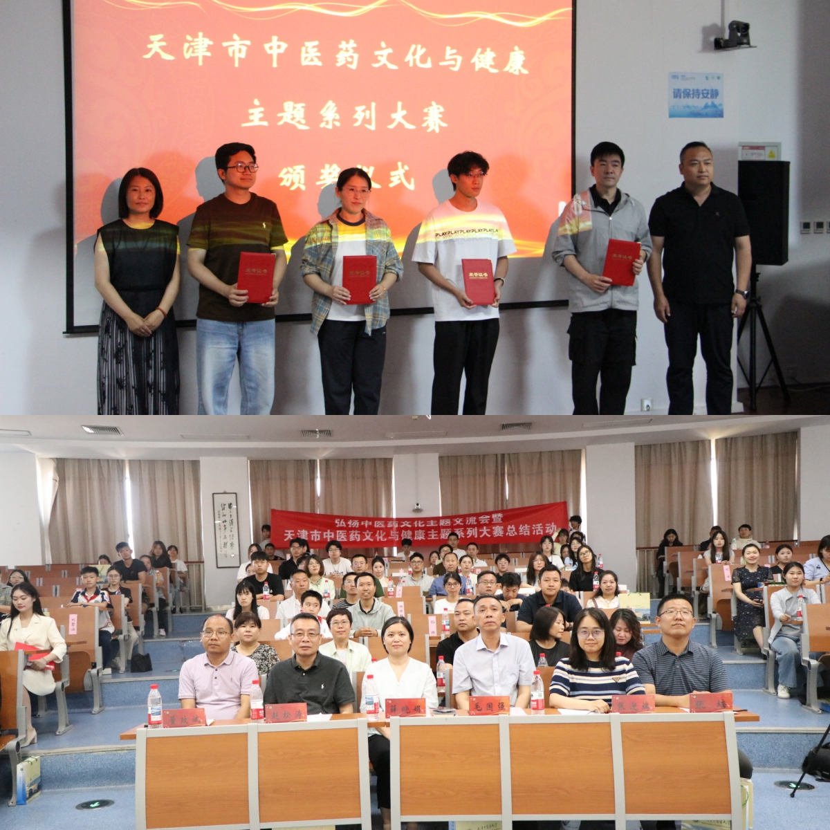 6月3日,由天津市卫生健康委、天津市教委主办,天津市中医药文化研究与传播中心承办的“天津市中医药文化与健康主题系列大赛”总结颁奖大会于天津中医药大学文化与健康传播学院举行。天津中医药大学党委副书记张华泉,天津市教科院中小学综合实践教研员赵松涛主任,天津职业大学学工部副部长董政斌,天津市中西医学会秘书长李清心,天津中医药大学文化与健康传播学院党委书记薛晓娟,天津市中医药文化研究与传播中心主任、天津中医药大学文化与健康传播学院院长毛国强教授,党委副书记张迎端,校团委副书记张培,等领导与专家出席。此外,各区教育局、13所高校及15所中小学参赛获奖的师生代表、获得大赛优秀组织奖的单位代表,以及天津中医药大学各学院的师生代表共100多人参会。