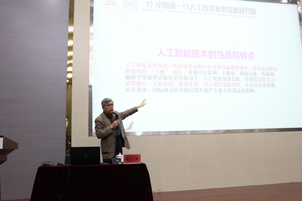 龚克教授以《怎么看?怎么干?——人工智能的技术特点、发展形势和我们的任务》为题,通过翔实的案例和深入浅出的理论讲解,向大家详细介绍了人工智能的历史发展脉络,以及人工智能的技术内核,解析产业发展的真实图景,还有我国在人工智能领域的发展前景等。讲座后,龚克教授与师生进行了互动。