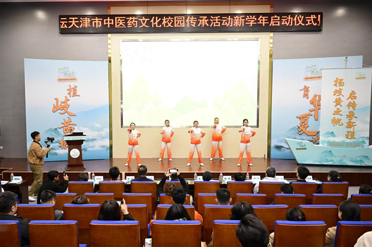 天津市卫健委中医综合处处长苏菁,天津市教委体卫劳处副处长於超,天津中医药大学文化与健康传播学院院长毛国强、副院长孔令彬,天津市卫生健康促进中心主任安广杰、副主任高皓宇,以及相关医院、学校、药企负责人等100多人出席活动。