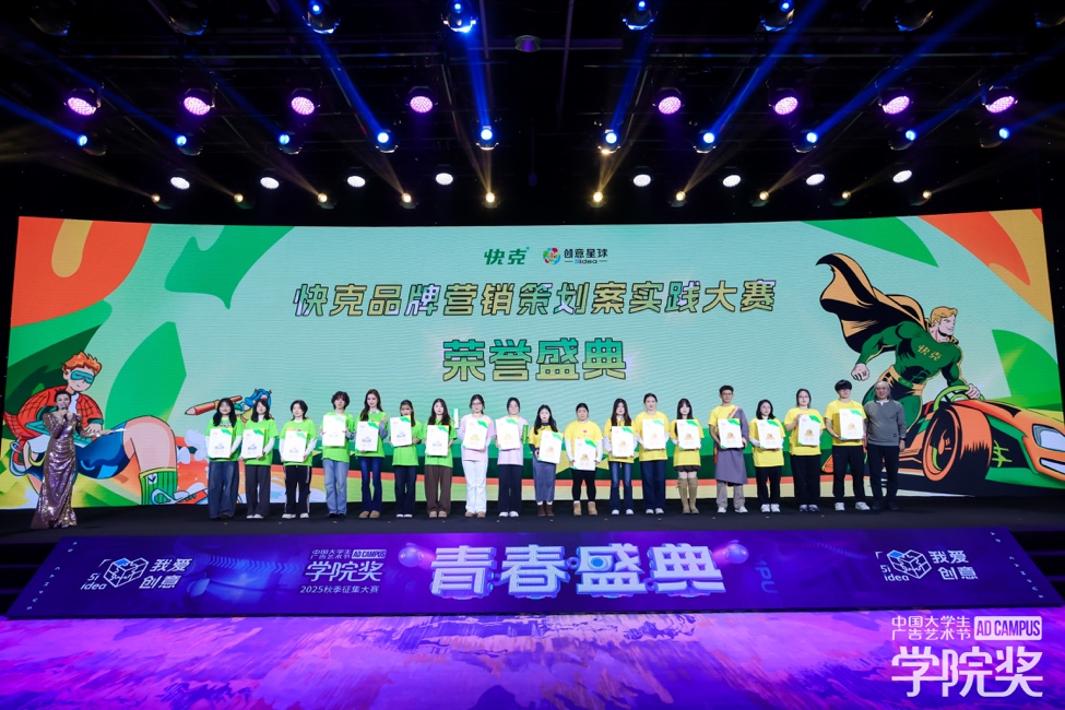 12月28日,中国大学生广告艺术节学院奖(简称学院奖)2025秋季赛颁奖典礼在北京广播大厦举行。学院传播学专业学生表现优异,由裴颖壮、张瑞熙、邹珊娜、姚云焱、花欣凌、宛霖、岑可滢、潘帅璋等同学创作的策划案《快克,让你知道谁才是身体的主人》荣获实践赛银奖与传播赛铜奖双料奖项。