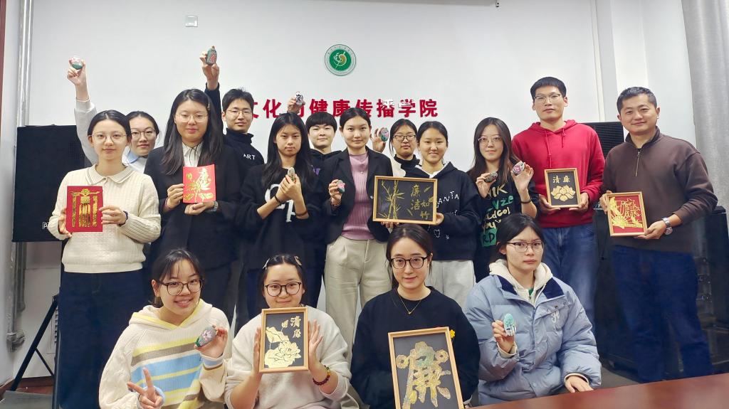 非遗金箔纸DIY环节则为活动增添了文化厚重感。党员们通过剪裁、粘贴、装饰等步骤,制作出印有“廉洁奉公”“廉洁如竹”等字样的精美手工作品。在指尖与非遗文化的碰撞中,党员们不仅感受到了传统工艺的魅力,更将廉洁初心与文化自信深度融合。2024级国际中文教育硕士研究生党员孙佳怡表示:“用非遗技艺传承廉洁文化,让我感受到了文化传承与廉洁建设的双重责任,这份手工作品我会好好珍藏,时刻提醒自己坚守廉洁底线。”