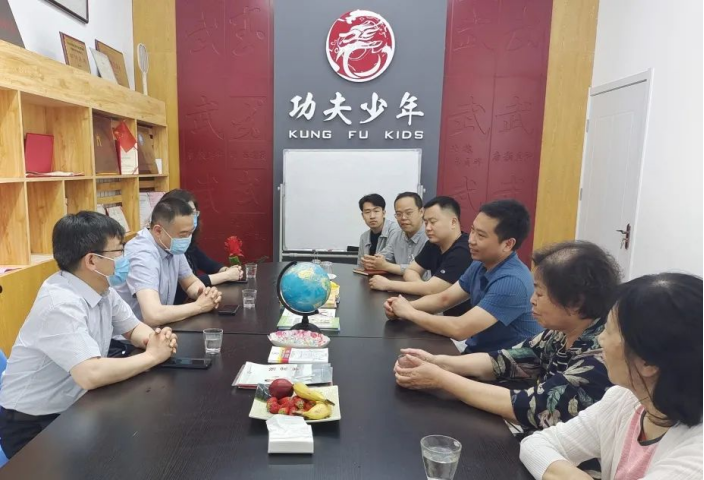 为贯彻落实党中央、国务院、天津市教育两委关于高校毕业生就业工作的决策部署,加快健全高校毕业生市场化社会化的就业创业工作机制,进一步落实毕业生就业工作“一把手”工程。2022年5月5日下午,我校党委副书记李鑫、文化与健康传播学院党委书记李开全、副院长薄彤、毕业班辅导员石超一行赴天津功夫少年体育文化传媒有限公司调研交流,洽谈校企合作事宜。天津功夫少年体育文化传媒有限公司董事长、天津市武术协会幼儿发展委员会主任徐福景、总经理赵信遵、技术顾问王香池、徐英英、张玲玲共同出席本次座谈交流会。
