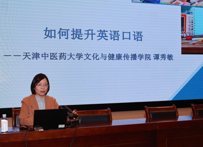 “2025年英语能力培训”第一期于3月26日举行,首先天津中医药大学第一附属医院副院长樊官伟教授进行了致辞讲话,他强调了此次系列讲座培训对于提升医护人员专业水平和对外接诊能力的重要意义。随后谭秀敏老师以“如何提升英语口语”为主题为与会的医护工作者们进行了培训交流,系统总结了英语口语练习中的常见问题,介绍了英语口语练习的常用方法与技巧,并演示了如何利用AI工具进行英语口语练习。