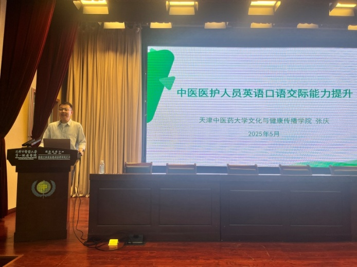“2025年英语能力培训”第二期于5月9日举行。张庆老师以“中医医护人员英语口语交际能力提升”为主题开展了讲座,结合医护人员的实际需求,系统讲解了同形异音意义词、句子停顿规律及精听和泛听方法,强调语言输入与输出的平衡。此外,张庆老师深入解读了中医英语术语国际标准,通过典型翻译案例剖析常见问题,帮助医护人员掌握准确、规范的表达方式。最后,张庆老师还推荐了实用英语学习软件,为日常自主学习提供资源支持。