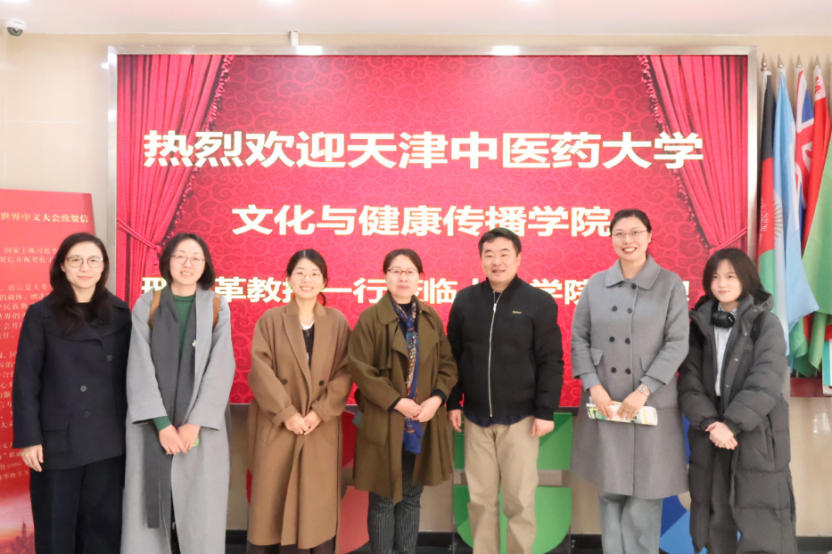 为深入学习借鉴中国传媒大学在人文语言与文化传播领域的先进经验,探索新时代背景下的交叉融合路径与创新育人模式,推动汉语言专业高质量发展,11月13日,天津中医药大学文化与健康传播学院汉语言专业负责人邢永革教授带队,汉语教研室主任金沛沛、教师张丽及青年教师李雪琪一行4人,赴中国传媒大学人文学院开展专项调研交流。中国传媒大学人文学院院长王永、副院长张婧、汉语言专业负责人何伟教授等多位专家学者出席座谈。